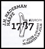 Oblitération 1er jour à Paris au Carré d'Encre, Strasbourg et Mantes-la-Jolie le dimanche 4 mai 2014