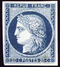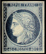 Cérès noir, premier timbre français 1849 Cérès noir, premier timbre français 1849