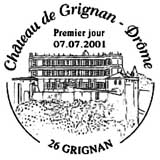 Oblitération 1er jour à Grignan le 7 juillet 2001