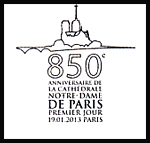 Oblitération 1er jour à Paris au Carré d'Encre et à la cathédrale Notre-Dame de Paris le samedi 19 janvier 2013.'